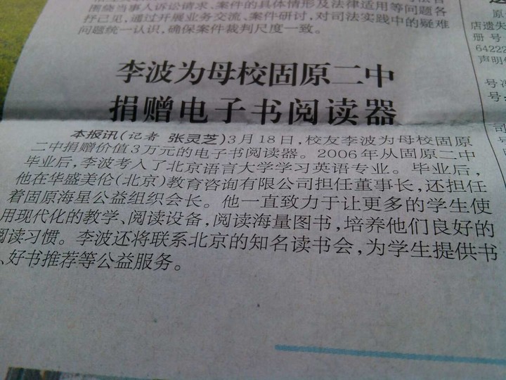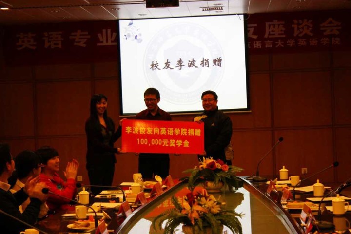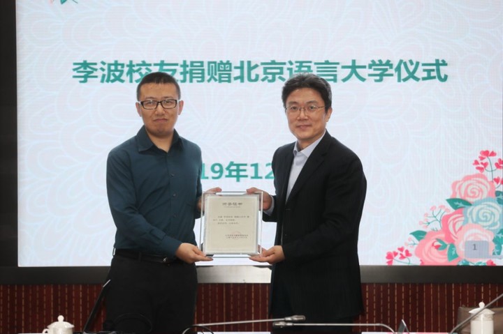李波向母校北京语言大学捐款100万元,用于学校、学部的教育事业发展。为北语校史上最大额和最年轻的个人捐赠者。